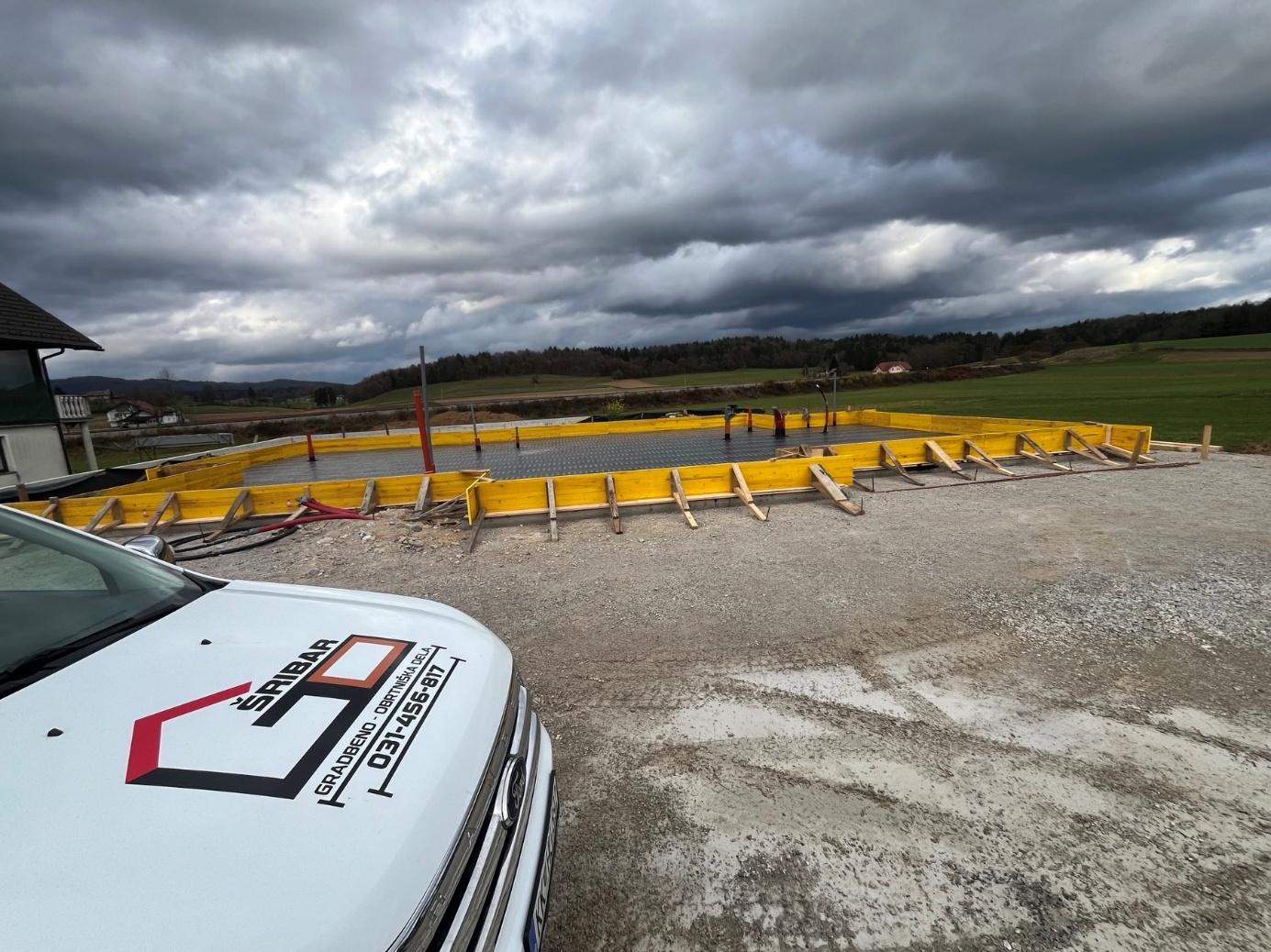 Temeljne plošče, armiranje, opaženje in betoniranje konstrukcijskih elementov z ustreznimi materiali.